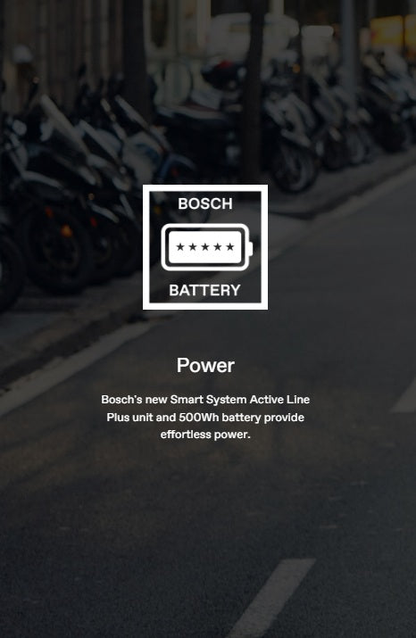 - Bosch Smart System - Active Line Plus 20 mph drive-unit / 500Wh battery / Range: up to 70 miles