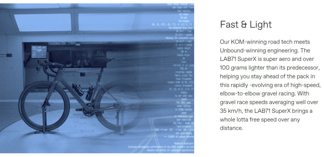 - Frame - Lab71 SuperX, Series 0 carbon construction, Proportional Response construction, internal cable routing, 12x142mm thru-axle, UDH BSA 68mm threaded BB, flat mount disc, integrated seatpost binder