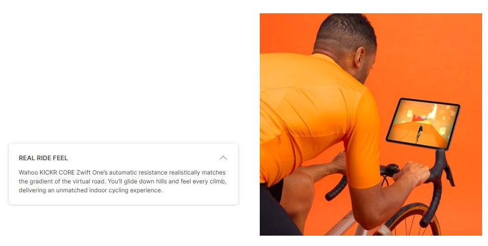 • Real Ride Feel - Wahoo KICKR CORE Zwift One’s automatic resistance realistically matches the gradient of the virtual road. You’ll glide down hills and feel every climb, delivering an unmatched indoor cycling experience.